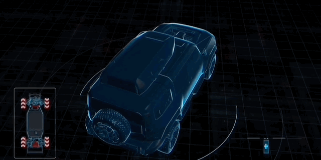 都是分布式驱动系统,四电机独立驱动车轮,在中央计算平台和域控器的协同作用下,每个车轮能以不同扭矩和方向驱动,因此能让乘用车和坦克一样原地掉头。