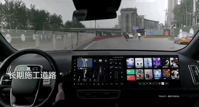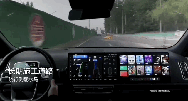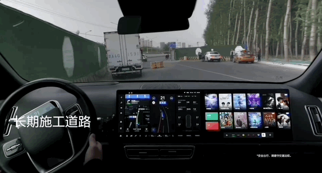 在实车路测视频中,理想AD Max 3.0在长期施工道路上,可以通过无车道线路段: