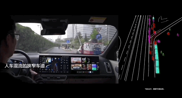 还能驶入人车混流的狭窄车道: