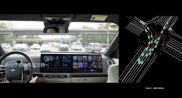 另外,在车流量非常大的北京大山子路段,理想AD Max 3.0也能实现自主左转: