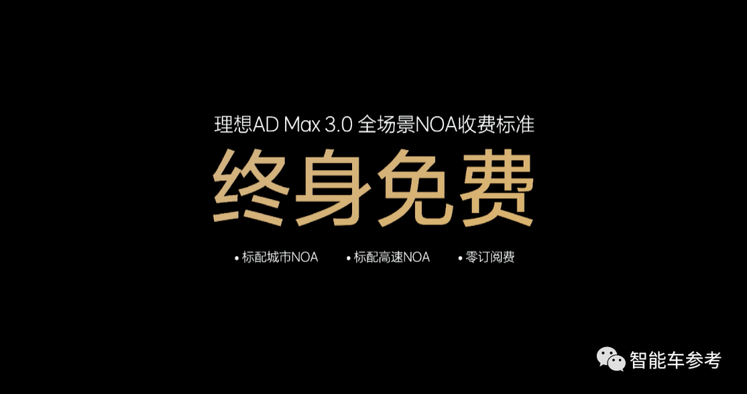 除了公布纯电方面的布局,理想还发布了能实现城区NOA的理想AD Max 3.0系统,价格:随车标配,终身免费。