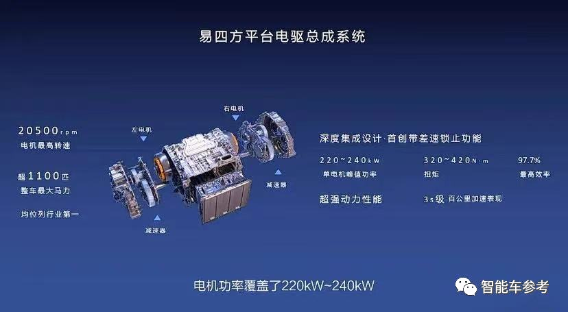 “易四方”是一套以四电机独立驱动为核心的动力系统,该平台主要基于三大核心控制技术:四电机独立控制、极限防滑控制、车身稳定性控制,能够为车辆在城市道路、高速公路、户外越野等各种场景提供安全保障。