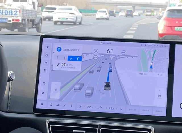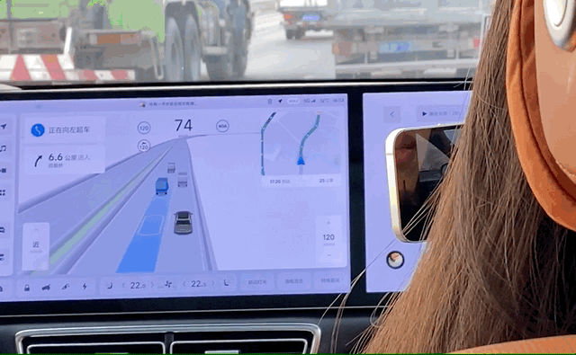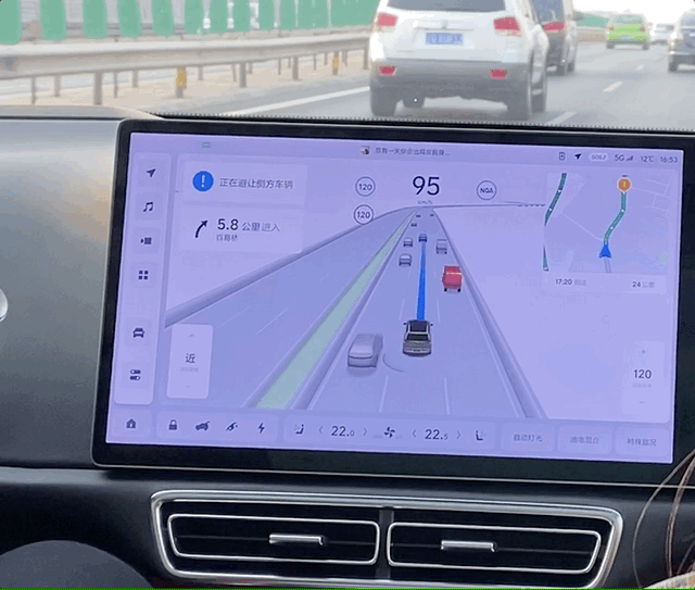 进入高速公路路段后,车辆会根据路线适时完成自动变道超车。总体来看,理想这款车的变道策略相对较为保守。只有在确认足够安全的前提下,才会进行变道。