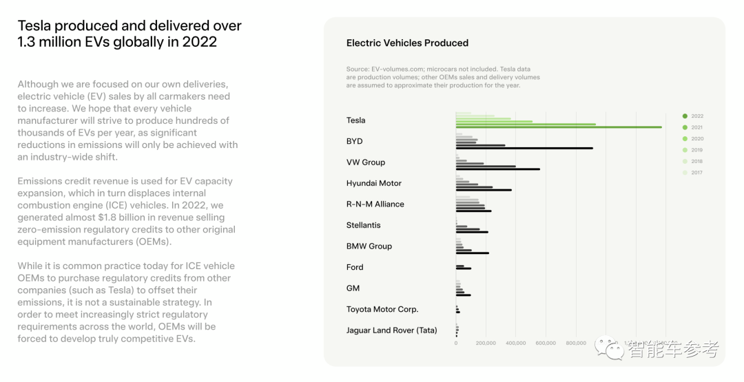 从这个标准来看,特斯拉认为自己远远超过比亚迪、大众、现代、宝马、福特、丰田等等,因为去年全年特斯拉全球交付了超过130万辆纯电动车。