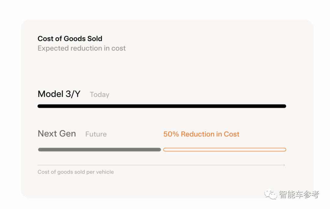 不光如此,特斯拉还在最新的报告里透露:下一代平台的车辆,成本将会降低50%。