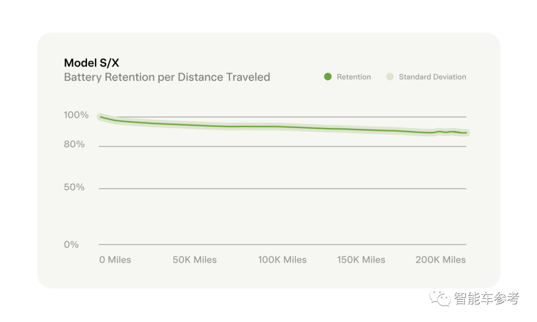 经过调查,特斯拉还得出了一个结论:即便跑了20万英里(32万公里),特斯拉车辆的电池平均只衰减了12%。