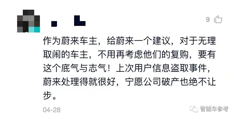 水军这么多,我也没什么好讲的。大家还会继续维权,对蔚来口碑不是件好事。