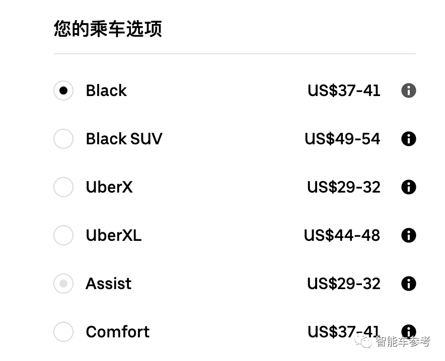 相比之下,同样的上下车地点,乘坐Uber的出租车,需要花费最低29美元(约200元人民币)。