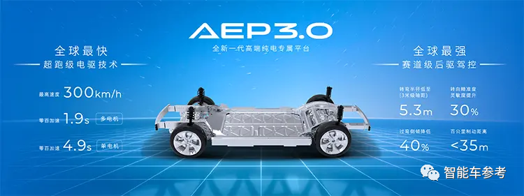 依次来看,广汽埃安AEP3.0平台,是在之前的2.0平台注重空间、续航、安全性的基础上,更加注重驾控乐趣,官方称3.0平台通过超跑级电驱技术,速度最高可达300km/h,部分车型零百加速可达1.9秒。