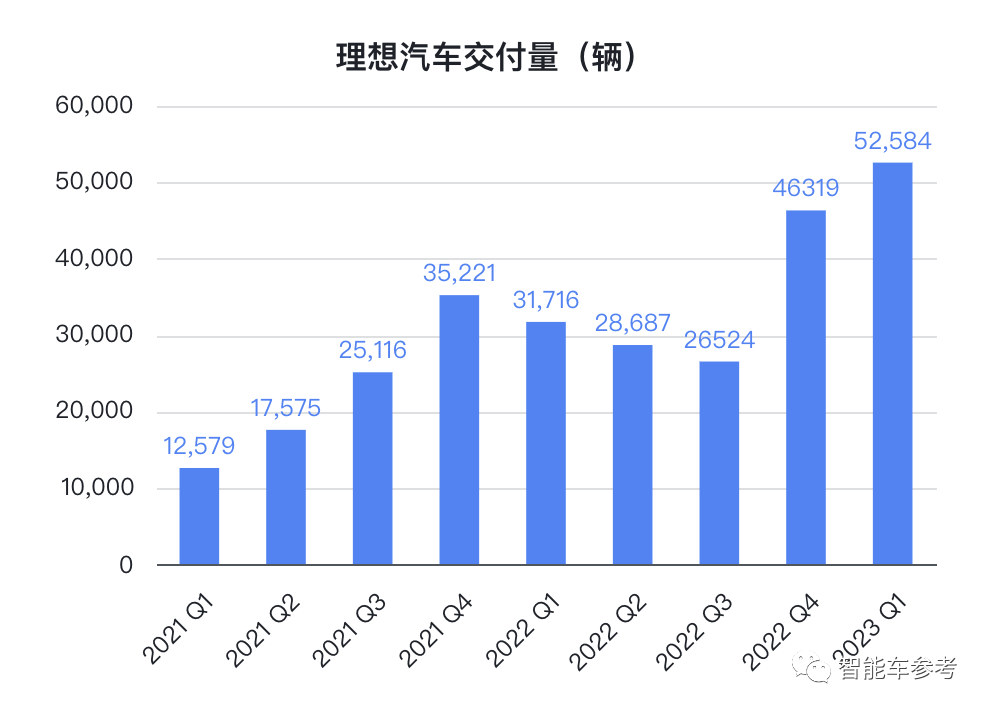 蔚来今年一季度交付31041辆、小鹏一季度交付18230辆,而此时此刻理想已经抢先一步迈过了5万大关。