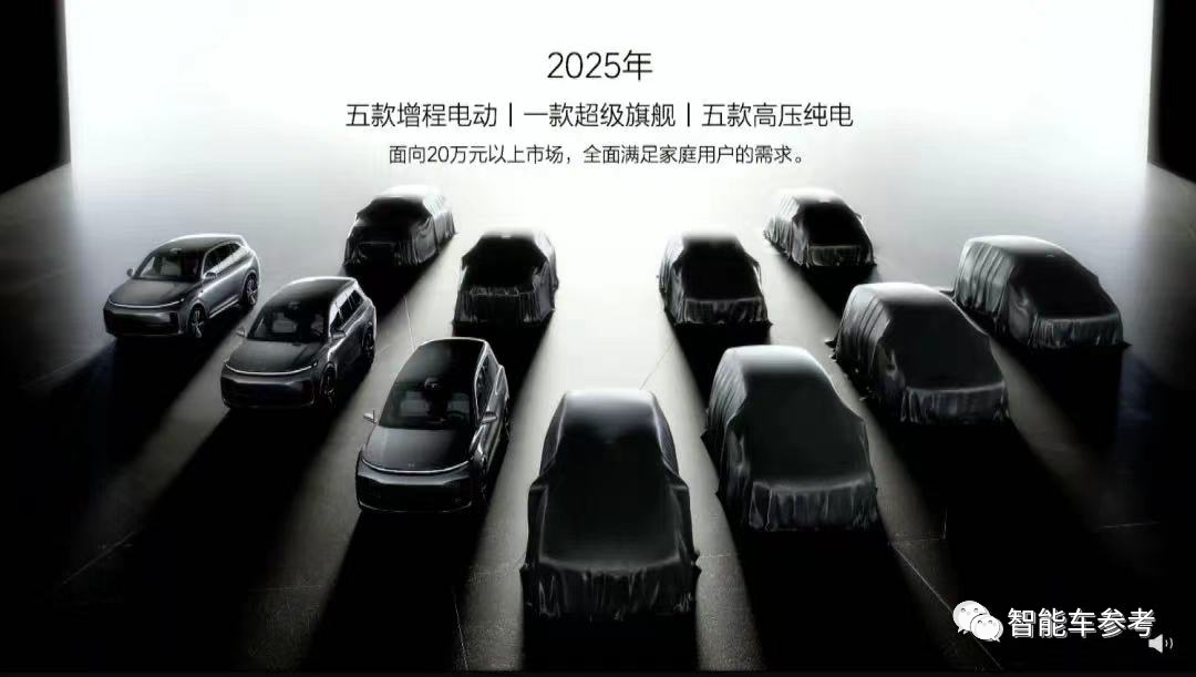 根据介绍,到2025年,理想汽车产品矩阵将包含1款超级旗舰车型、 5款增程电动车型和5款纯电车型。