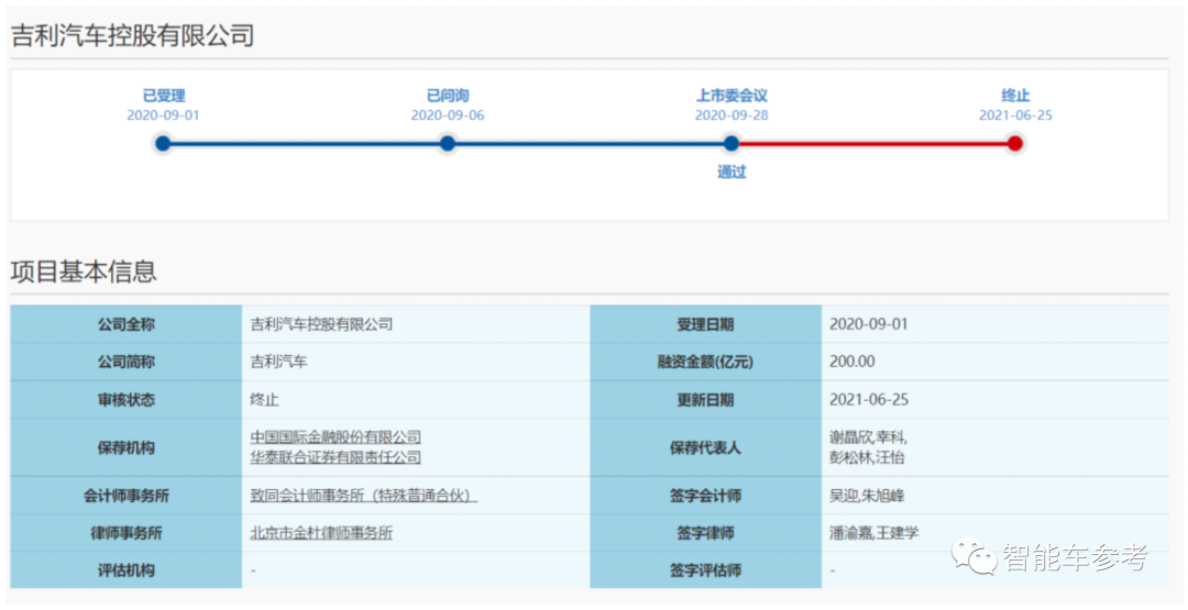 吉利汽车6月25日港交所发布的公告中称,吉利将撤回A股科创板IPO的申请,待有关条件成熟后,再积极推进人民币股份发行上市工作。