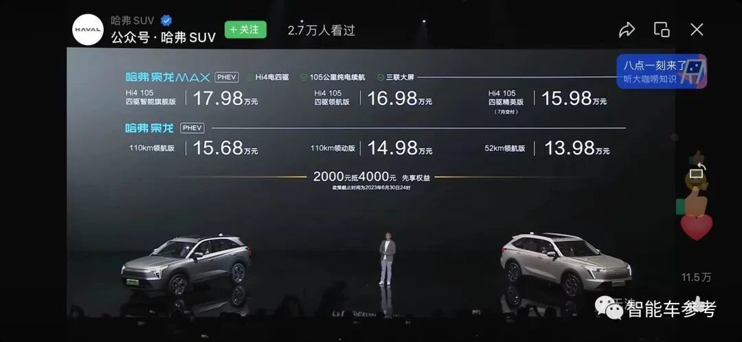 在这个基础上,定价尽量低,把核心竞争力和差异化优势聚焦在同价位下比亚迪没有的功能体验——H(混动)i(智能)4(四驱)。