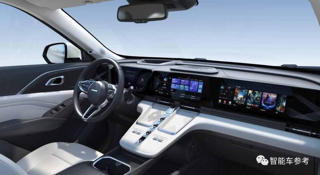 另外全系标配的还有高通8155芯片支持的智能座舱系统,三块大联屏也是全系都有。应用方面,主流的视频、音乐、导航app应上尽上。