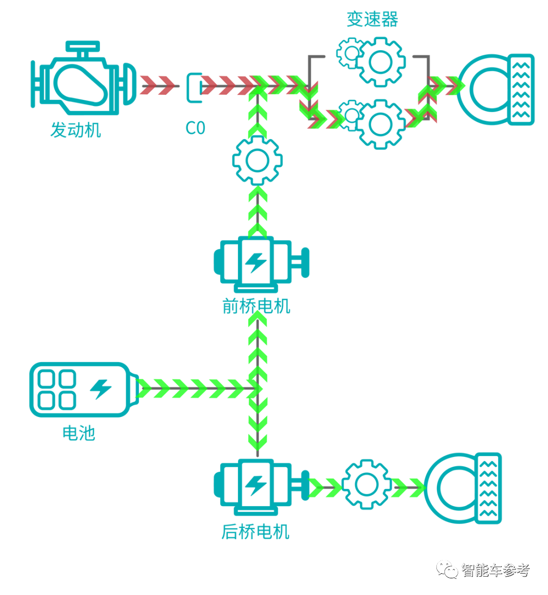 高速巡航:2挡直驱模式,使发动机工作点完全落在高效区间,且传递路径最短、效率最高;