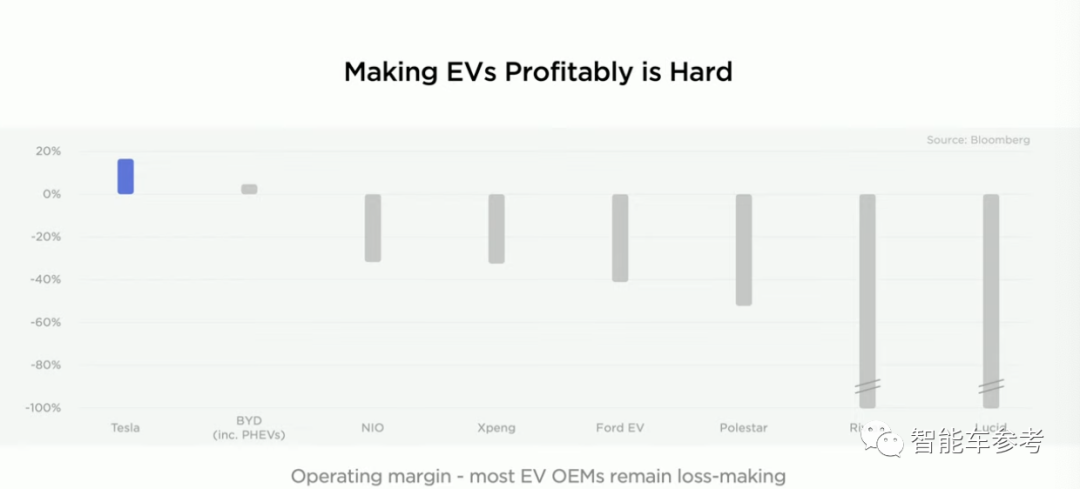 并且还是唯一一个实现正向盈利的造车新势力,直接对比了比亚迪、蔚来、小鹏等等友商: