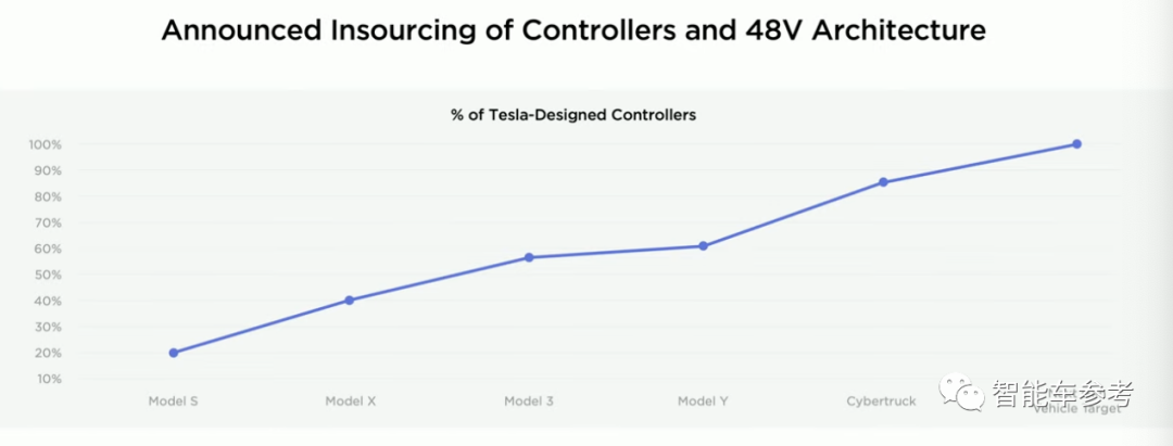 另外,随着车型更新,特斯拉逐渐将所有车上使用的控制器都替换成自研产品: