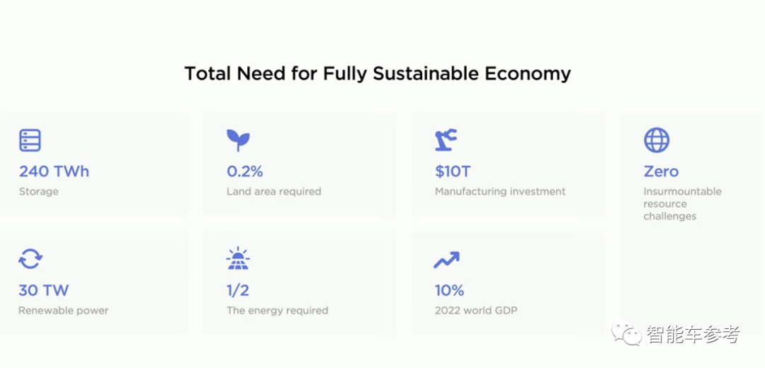 总目标是实现240TWh的储能,30TWh的可再生电力,以及制造业10万亿美元投资,相关设施的占地球总面积做到低于0.2%。