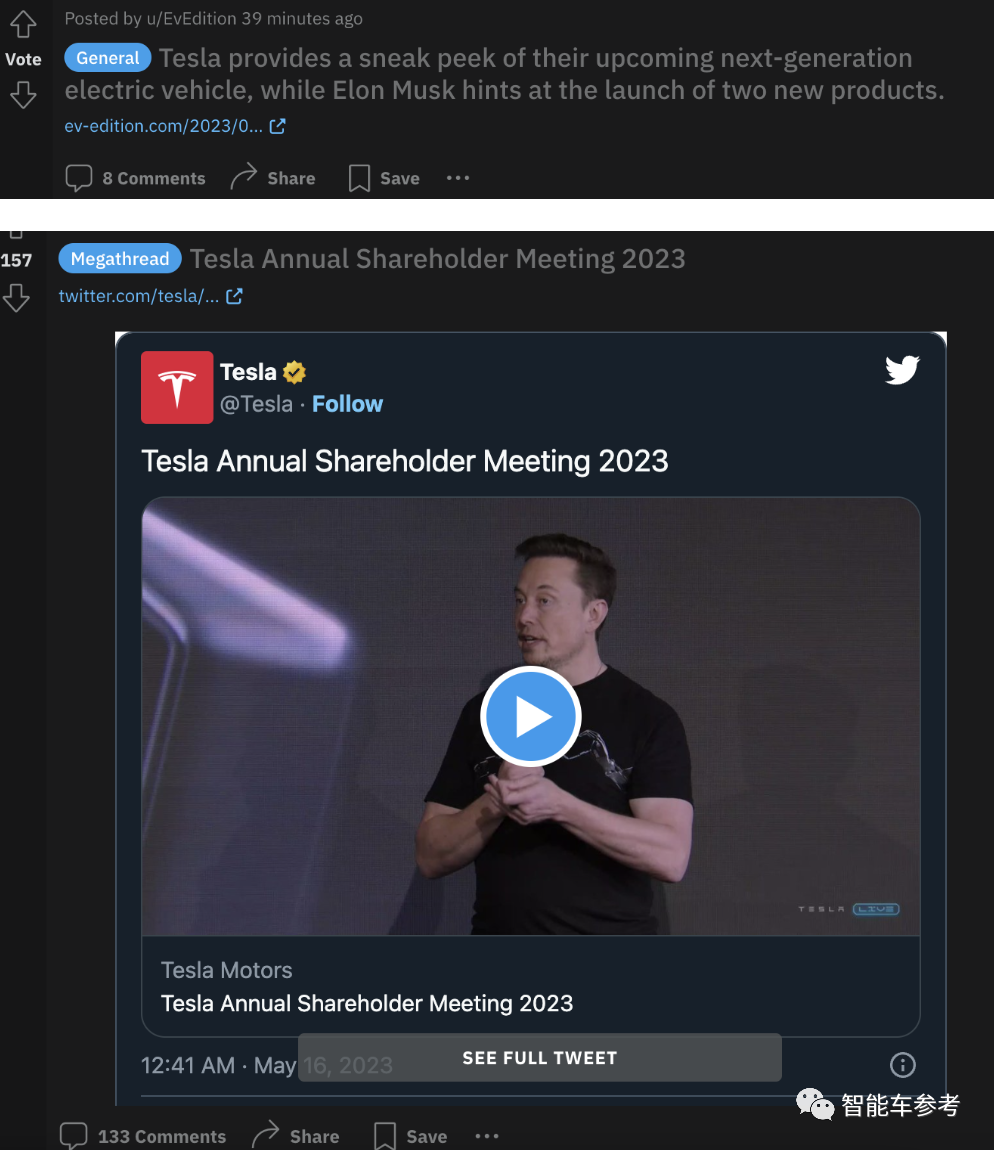 比如Reddit论坛的特斯拉板块(220万关注者),90min的活动进行完时,只有两个新帖,不到150条回复讨论: