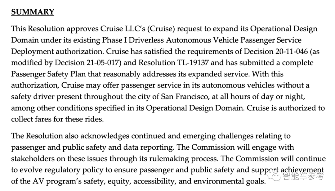 Cruise是获准可以在原来的基础上,进一步扩大收费的运营范围,并延长收费的运营时间。