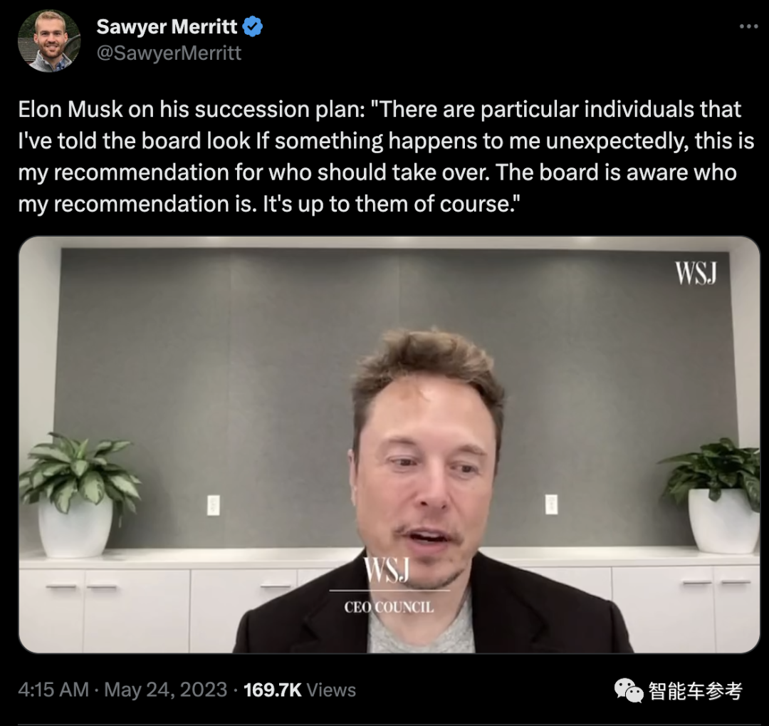 特斯拉接班人的计划,是马斯克在最近接受华尔街日报采访时透露的。