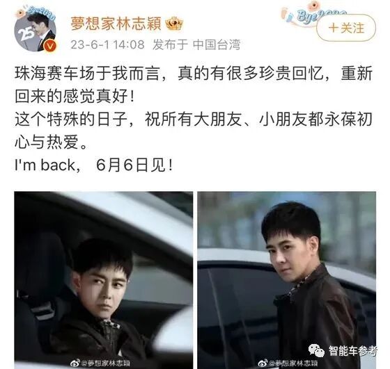 6月1日,林志颖在个人微博账号上发文称:“I’m back,6月6日见!”