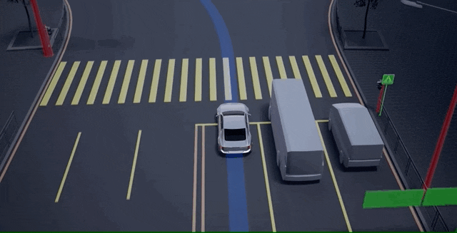 路口能自动识别红绿灯,并完成无保护左转通行: