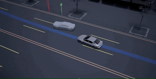 你在路上临时遇到障碍物、近距离加塞、跟车转弯等等情况,依靠的是车本身的感知和规控能力来实时处理。