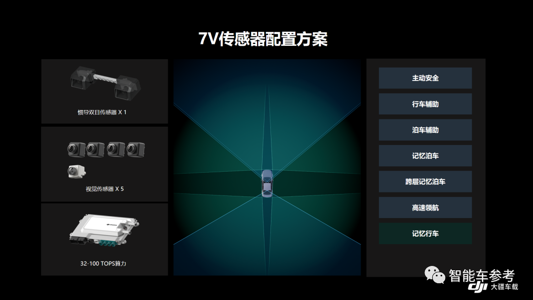 事实上,大疆这个7摄像头纯视觉方案,标配主动安全、行车辅助、泊车辅助、记忆泊车、高速领航、记忆行车功能,对大多数人就已经足够用了。