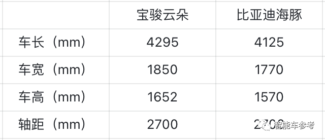 长宽高尺寸分别为4295/1850/1652mm,轴距为2700mm,对标的就是比亚迪海豚。