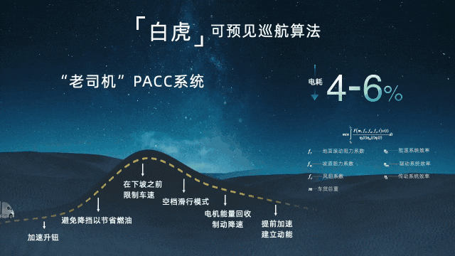 在更细致的层面,“白虎”通过优化巡航策略,可计算出最经济的车速区间,对电机转矩进行最优分配,最大程度地降低电耗,减少能源消耗,延长电动卡车的续航里程。
