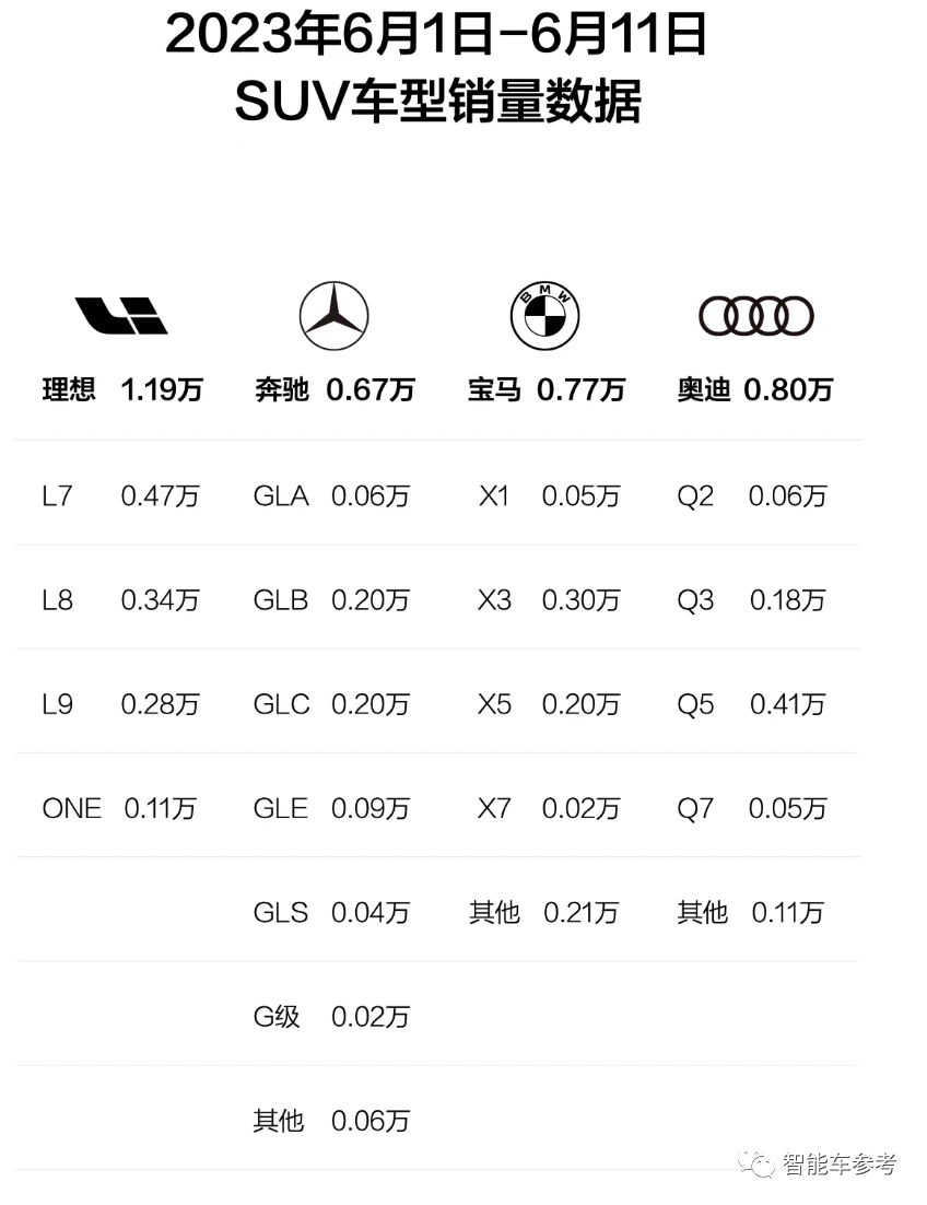 直接体现在销量上,理想目前月销逼近3w,根据6月最新的周统计,理想L系三款车,销量已经超过了BBA所有车型之和。