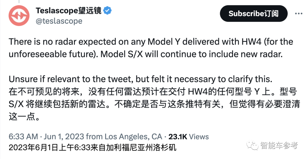 所以眼下HW4.0版本的Model Y不含毫米波雷达,似乎也能理解。