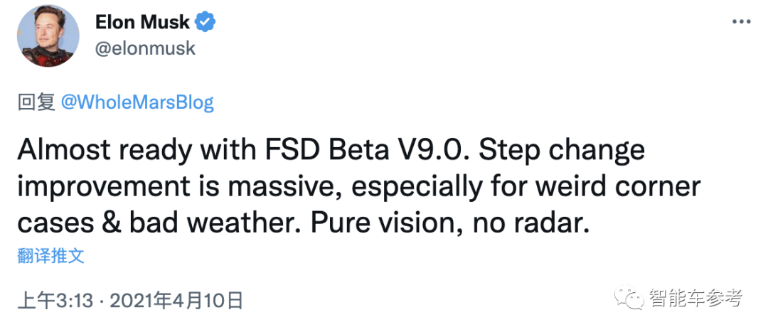 2021年4月,自动驾驶系统FSD的V9.0 beta测试版宣布采用纯视觉方案。