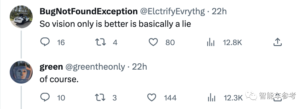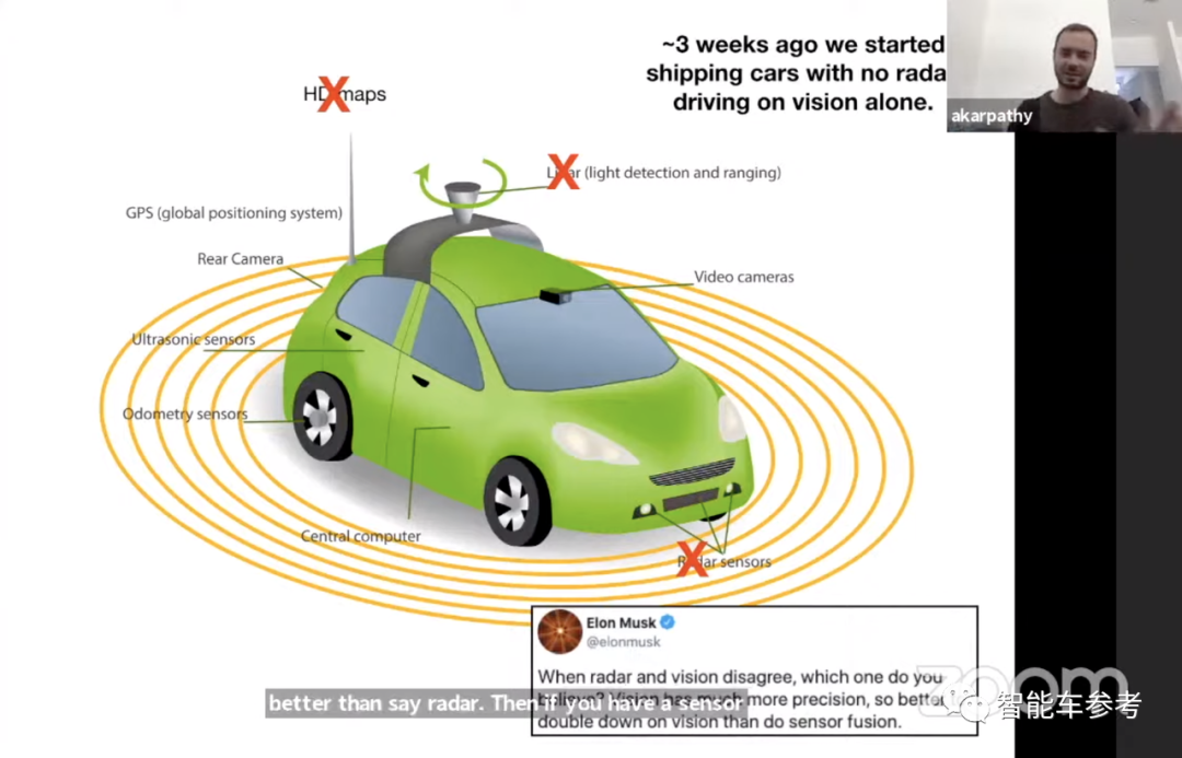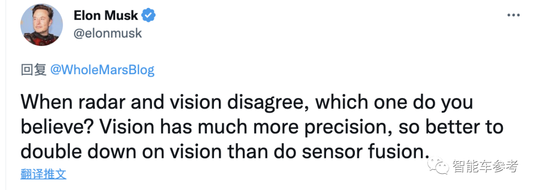 马斯克对此的回应是,纯视觉比视觉+雷达要更安全。