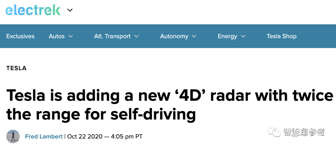 早在2020年十月份的时候,外媒electrek曾放出消息称特斯拉正在添加一款新的4D雷达,其射程是之前雷达的两倍。