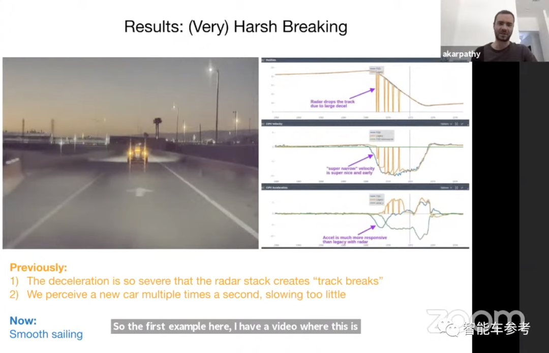 时任特斯拉AI总监的Andrej Karpathy也在CVPR’21 WAD自动驾驶研讨会上详细分析过毫米波雷达的问题所在,他列举了3个场景。