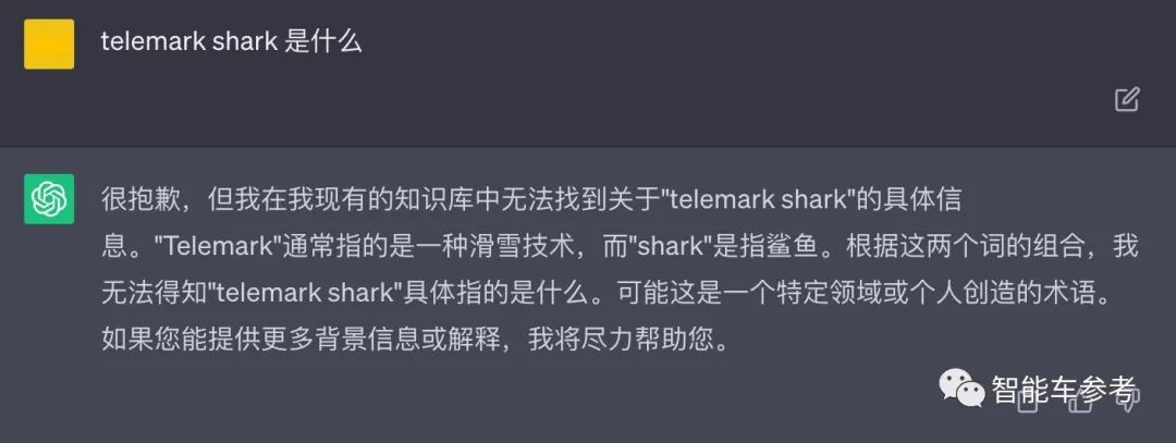 虽然这里telemark shark能大概理解成“电报鲨”,但这个词并不是真实存在的东西。我们顺带问了问ChatGPT,发现它也不知道。