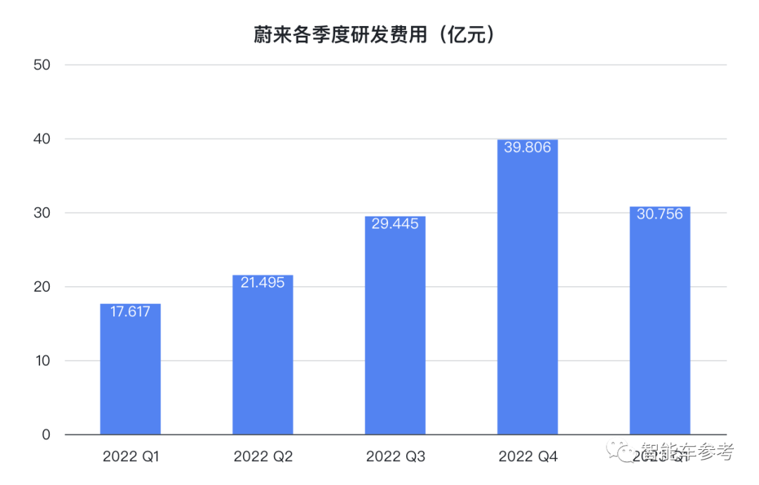 并且,蔚来会继续保持研发规模,一季度研发投入30.756亿元。李斌也明确蔚来手机、芯片、电池等各项投入不会减少,每季度将保持在30-35亿的区间。