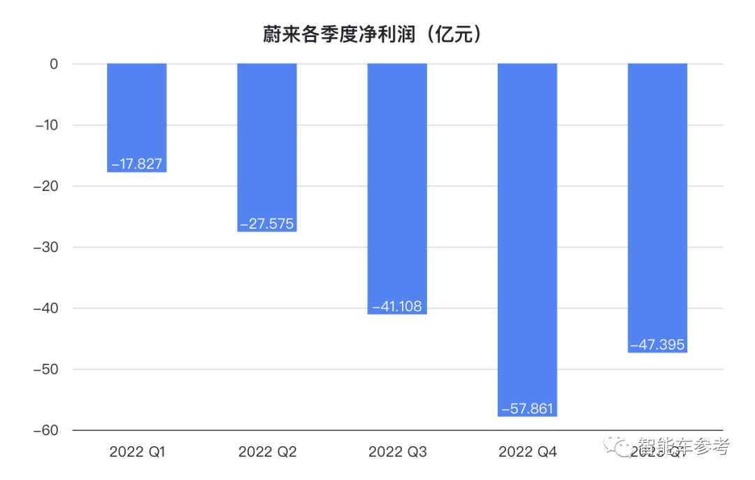 并且蔚来还在亏损,一季度净亏损为47.395亿元,略有收窄,环比下降18.1%,但相当于卖一辆车亏15.27万,在蔚小理中亏得最多。