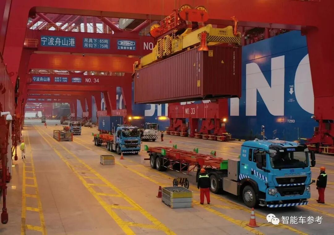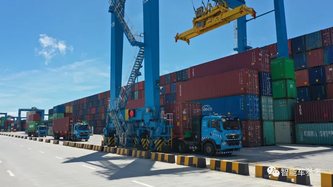 L4级无人卡车拉着集装箱往返于码头和堆场之间,成为港口作业系统中的重要一环。