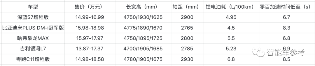 对比其他几款竞品,深蓝S7增程版有着较高的性价比。