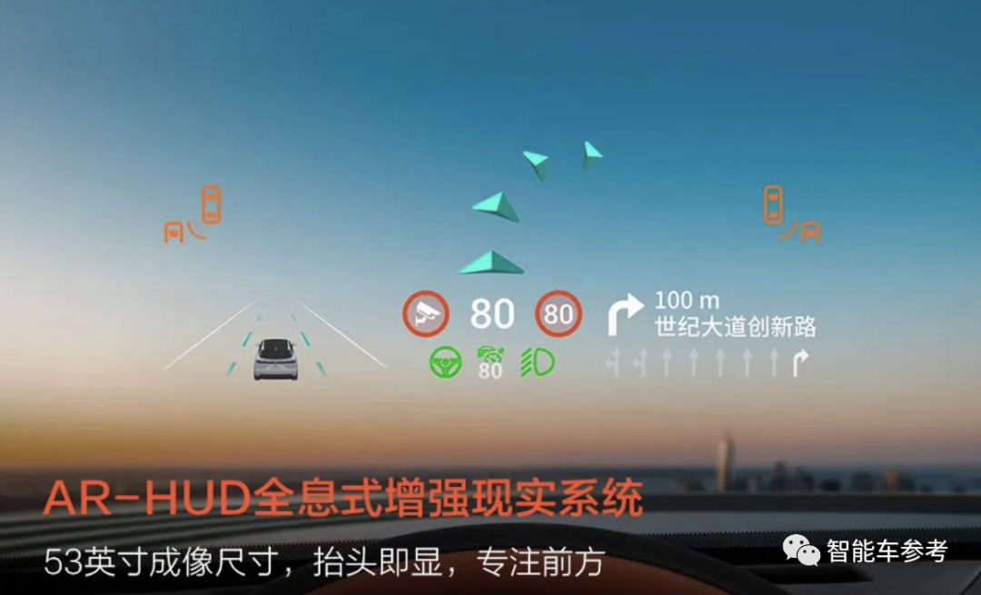 标配高通8155芯片,搭载15.6英寸中控屏、AR-HUD抬头显示。