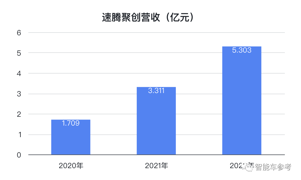 速腾聚创2020年、2021年、2022年营收分别为1.709亿元、3.311亿元、5.303亿元,复合年增长率为76.2%。