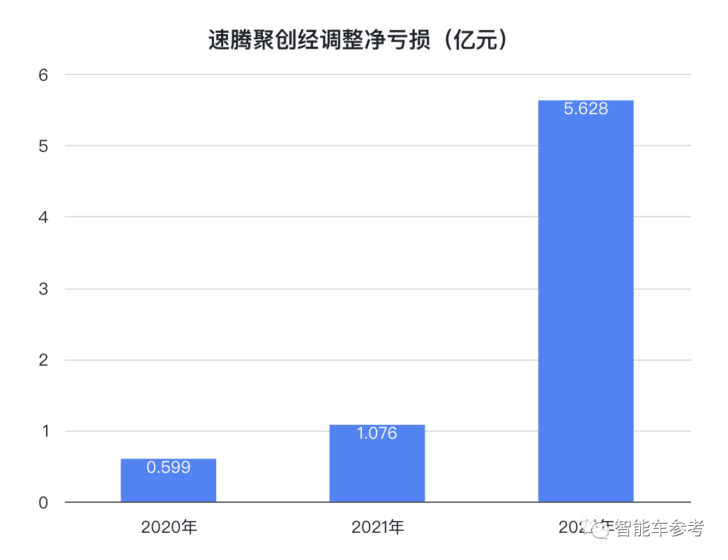截至目前,速腾仍处于亏损状态:2020-2022年经调整净亏损分别为5993.4万元、1.076亿元、5.628亿元,其中2022年净亏损同比增加423%。
