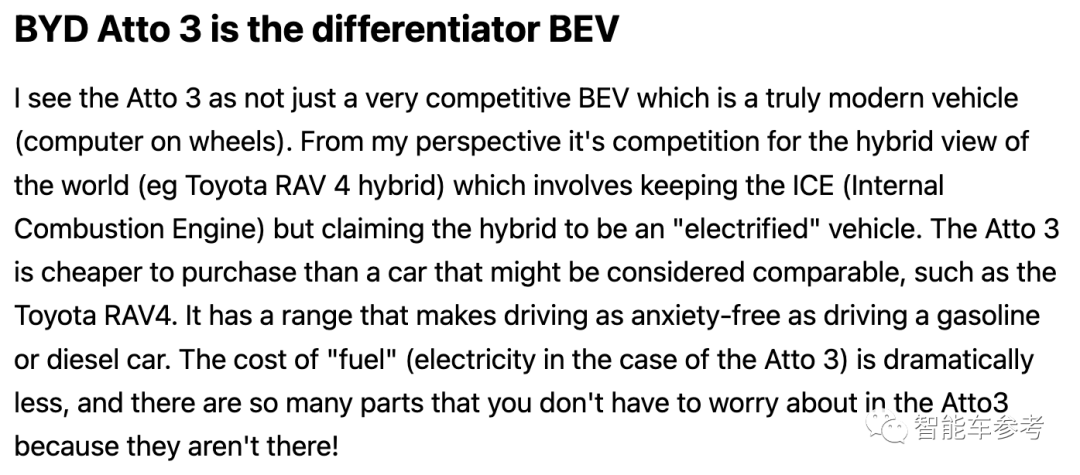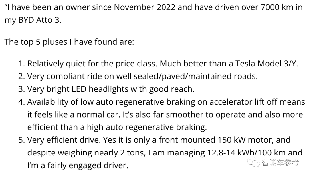 也有人评论,比亚迪ATTO 3功能齐全,外观时尚,内饰时髦,动力和操控性也非常不错,“是这个价格范围内最好的汽车之一”。