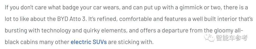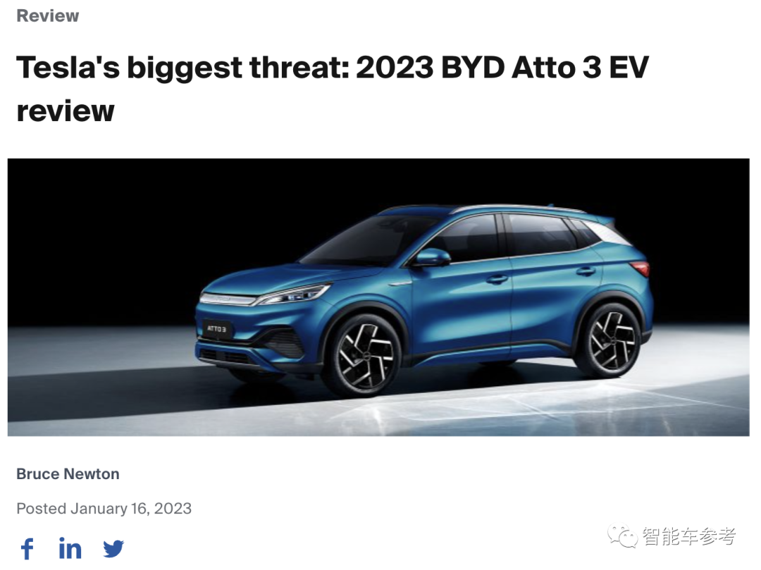 另外还有澳大利亚媒体认为,比亚迪ATTO 3拥有令人印象深刻的性能,续航足够用,众多标准配置,还有实惠的价格,“是特斯拉最大的威胁”。