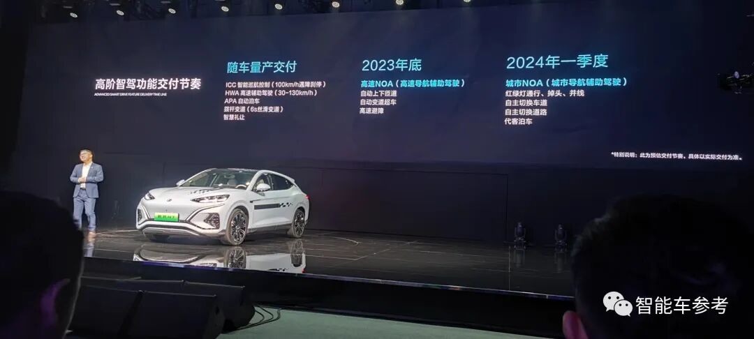 交付节奏上,7月中旬第一批交付产品,已经搭载基础L2主动和被动功能、自主泊车,以及拨杆变道。