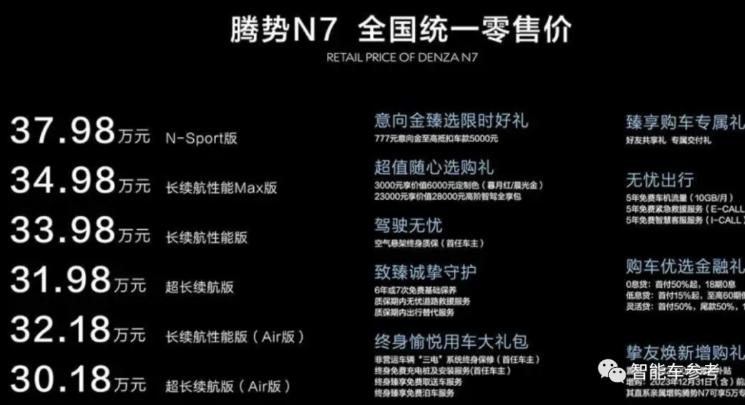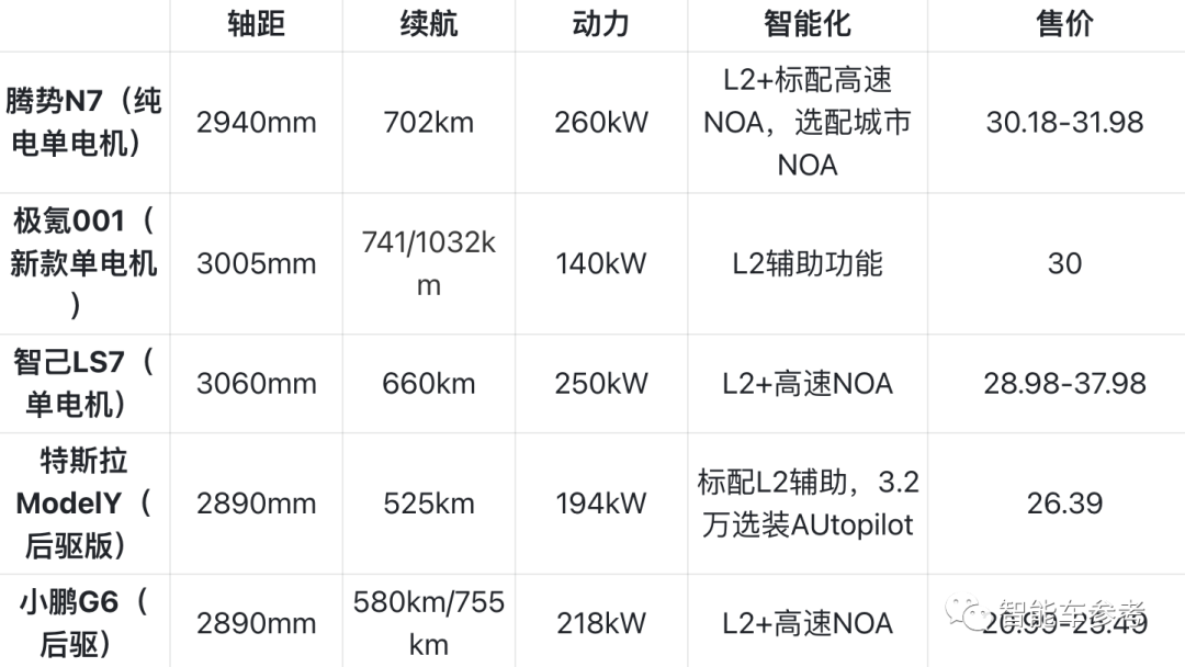 其实很容易看出腾势N7的竞争策略:BBA的顶配,是它的标配。