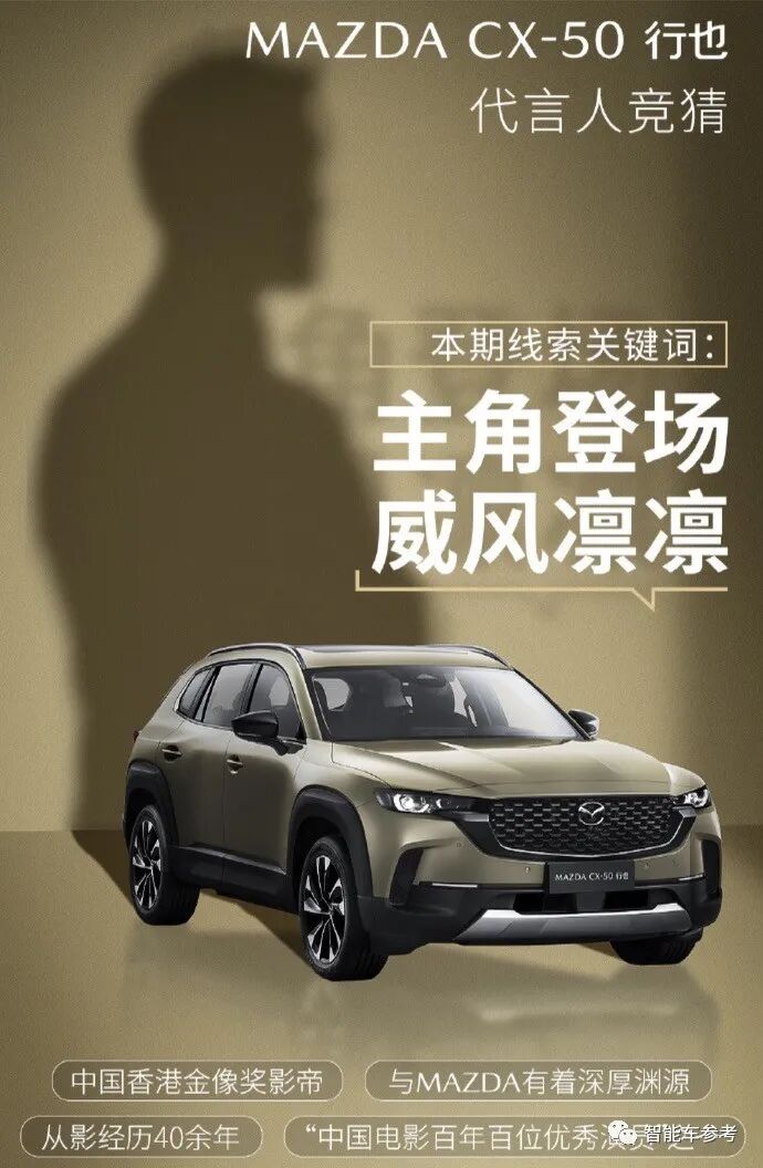 这次合作最早有消息传出,是在6月5日。长安马自达官方微博官宣新车CX-50 行也代言人将携手神秘代言人,并给出提示线索: